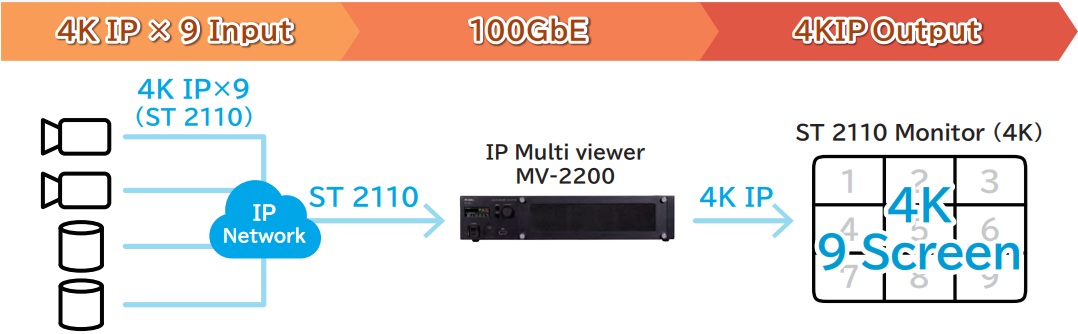 ■Max 9 × 4K input with 2 × MV-2200-IP (input module)