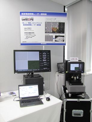 超高速カメラ HC-4502 の試作機を展示し、レーザー着火、線香花火、レーザー光の飛翔実験映像をデモしました。