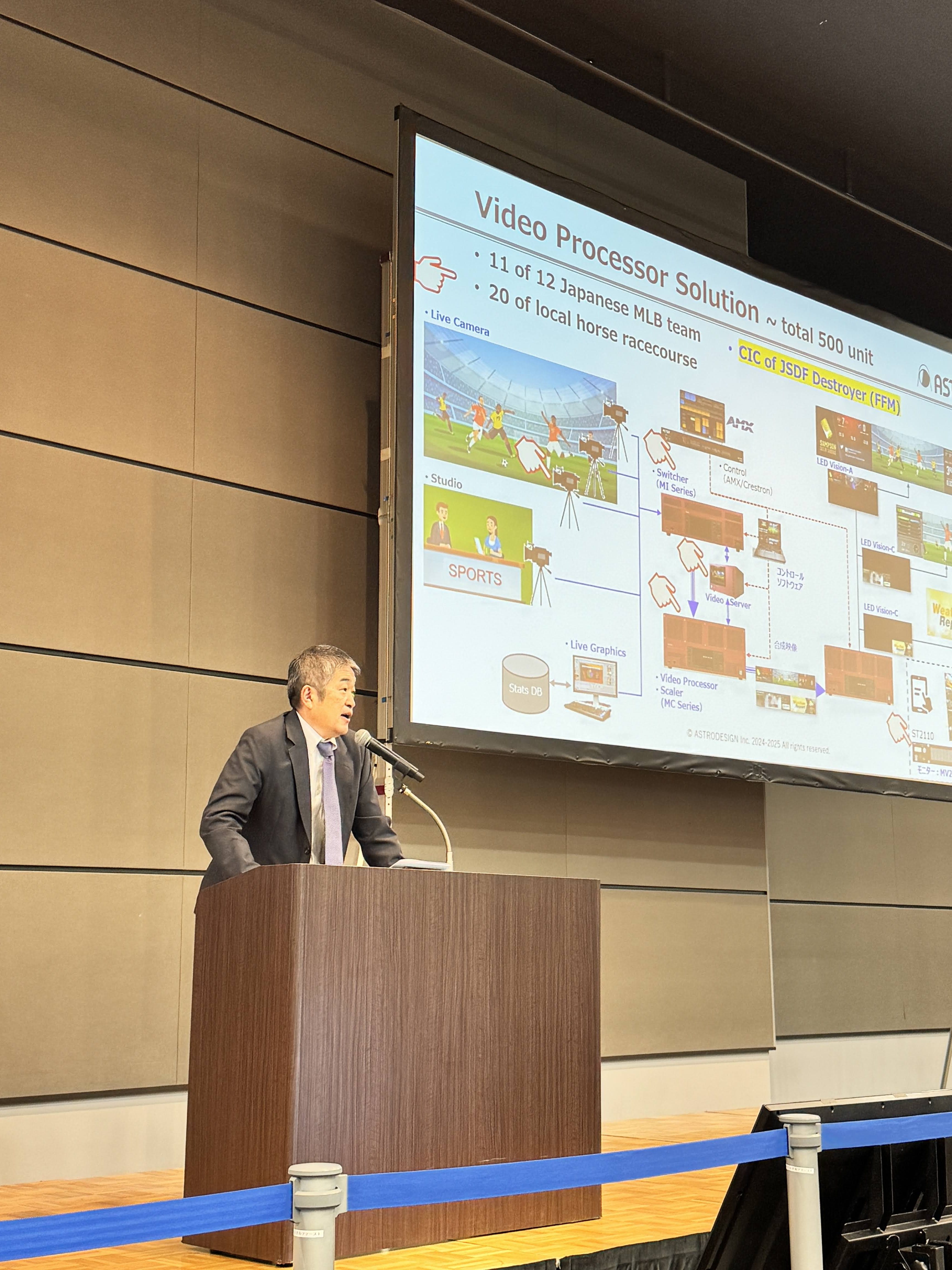 アストロデザイン(東京都大田区 難波豊明社長)は、9月24日(水)・25日(木)にベルサール渋谷ファーストB1ホールにて行われた防衛装備庁主催のイベント「インダストリーデー2025 in TOKYO」に参加し、古瀬弘康 企画・マーケティング戦略担当執行役がアストロデザインのハイエンド映像技術や8Kソリューションの紹介を行いました。